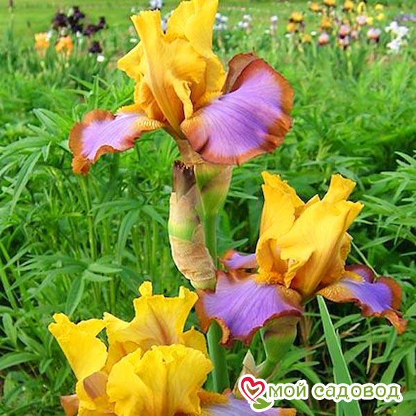 Это удивительное растение мечтают заполучить в свою коллекцию многие садоводы. Сорт выносливый и не требовательный к условиям выращивания. Он быстро приживается на новом месте. Купить недорого качественный посадочный материал можно в нашем интернет-магазине. Как выглядит растение? Это трехцветный сорт с редкой оригинальной окраской. Цветок сочетает в себе лавандовый, золотистый и горчичный оттенки. Куст среднерослый. Длина цветоносов составляет около 60 см. Листья длинные, острые, ярко-зеленые. Аромат тонкий и ненавязчивый. Применение в ландшафтном дизайне Браун Лассо – идеальный вариант для создания эффектных цветочных композиций. Он может быть использован для создания живых изгородей, клумб, миксбордеров. Многим нравится выращивать этот ирис как горшечное растение. Советы по посадке и выращиванию При выборе места для посадки обратите внимание на освещение – ирисы предпочитают солнечные участки с хорошей дренажной способностью почвы. Рекомендуется размещать саженцы на глубине около 10 – 15 см. Внутрь лунок насыпайте питательную почвосмесь – садовую землю с добавлением перегноя или торфа. Для полноценного развития многолетника важен регулярный полив и подкормки. Умеренные орошения особенно нужны в период цветения. Для подкормки можно использовать универсальные минеральные составы, предназначенные для цветущих культур. Положительные качества ириса Браун Лассо У сорта много ценных достоинств: компактные размеры; неприхотливость в уходе; крепкий иммунитет; универсальное применение; красивое и продолжительное цветение. Еще одним из преимуществ ириса является его доступная цена. Если хотите купить саженцы недорого, обратитесь в интернет-магазин «Мой садовод». У нас вы найдете широкий ассортимент посадочного материала на любой вкус. Покупка онлайн удобна, потому что есть возможность сравнить цены и оформить заказ, не выходя из дома.
